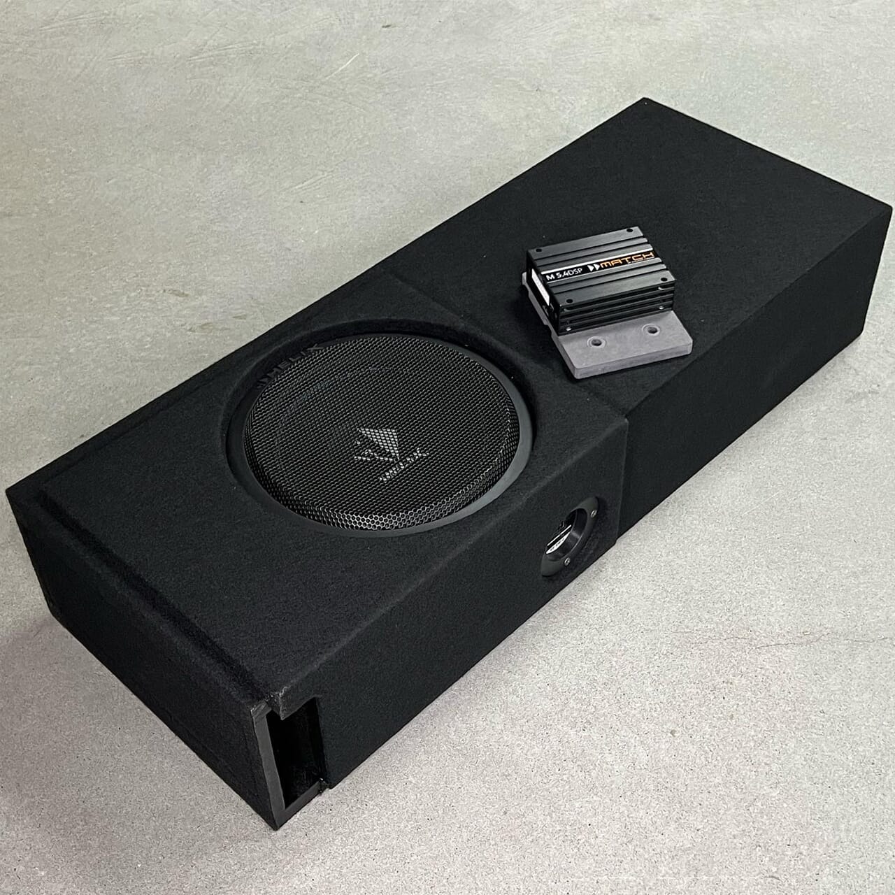Der hvor dørene sliter med å levere rund, fyldig bass, så tar ettermontert basskasse over jobben og sikrer et bassfundament bilen på ingen måte hadde fra før av. Biltilpasset 10" basskasse pent plassert skjult under lasteluken i varerommet. Her demonteres et panel som gjør at basshøyttaler og bassport kommer frem i bilens kupe. Utformingen på basskassen sørger for å tette bak mot varerommet. En løsning som både sikrer deg best mulig bassresultat og samtidig er montert helt skjult. Passer for både 2- og 3-seter utgave.