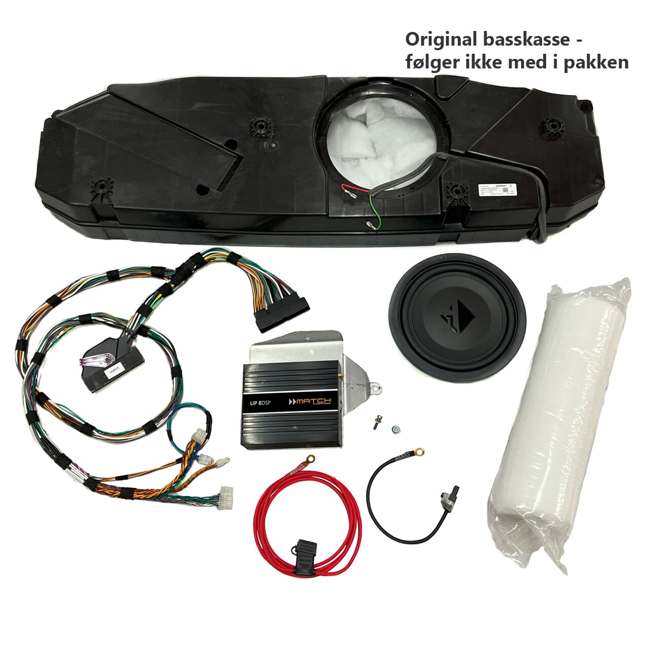 Ønsker du deg økt lydkvalitet i din Porsche Taycan? Denne pakken er spesielt utviklet for Taycan som er utstyrt med BOSE lydsystem. Originalt låter det greit, men det mangler dynamikk, volum og spilleglede. Med en Match UP 8DSP forsterker montert fikk vi kreftene og kontrollen det originale systemet mangler. BOSE systemet er et 14-kanals system, og her har vi valgt å forsterkere åtte av kanalene med Match UP 8DSP. Med denne installert løftes lyden skikkelig i 3-veis systemet foran, i senterkanalen, og i subwooferen bak. Forsterkeren yter godt over 700 ekte watt, og dynamikken og moroa kommer plutselig frem. Selv på lavere volum får man ut mye mer dynamikk og tilstedeværelse av vokal og instrumenter enn hva som er mulig fra originalforsterker.