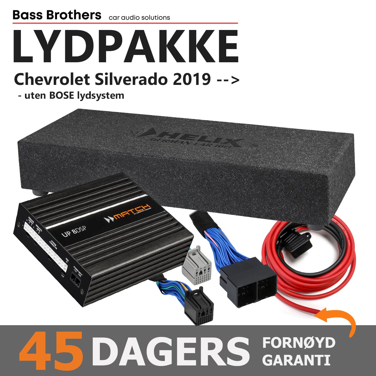 "Nivå 2" oppgraderingspakke med 10" basskasse for Chevrolet Silverado 2019 og nyere, uten BOSE, og med RPO radiokode IOK, IOU eller IOT (se info lenger ned).