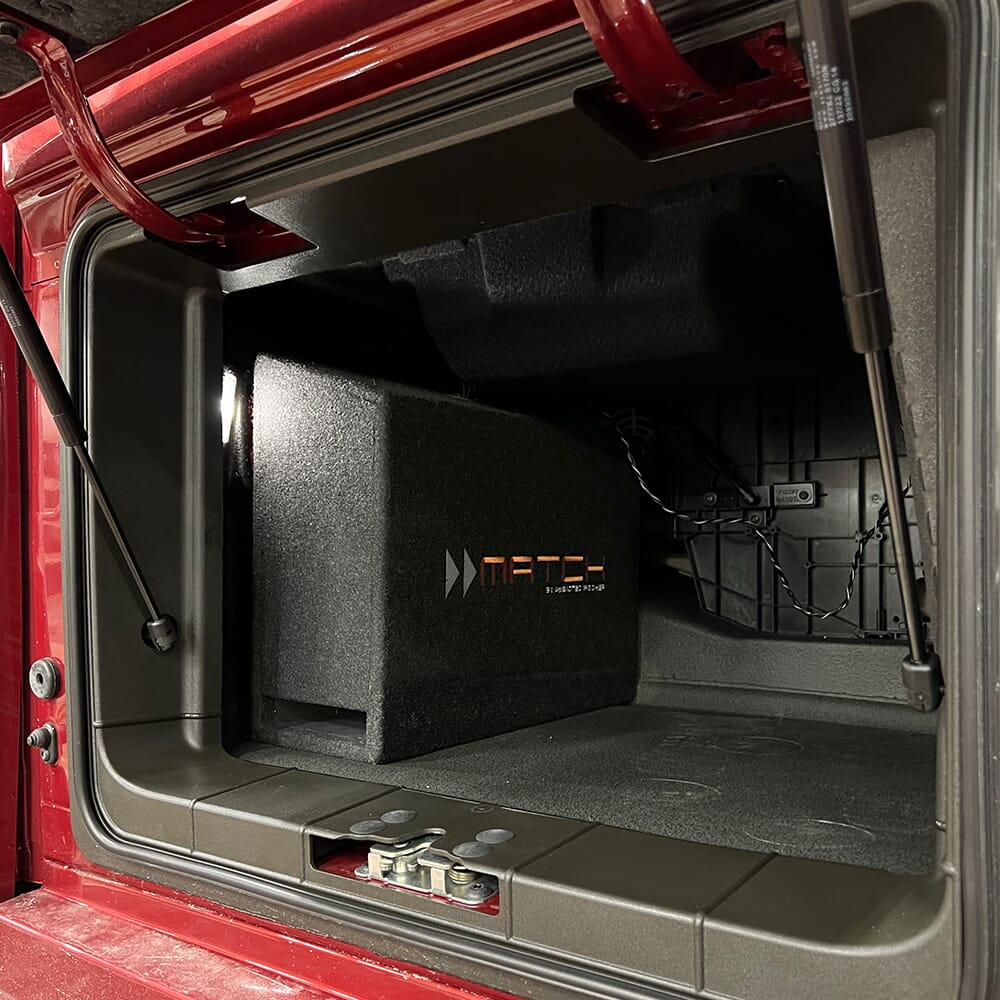 Oppgraderingspakke med 10" subwoofer for Volvo FH som har oppgradert lydpakke originalt fra fabrikk.