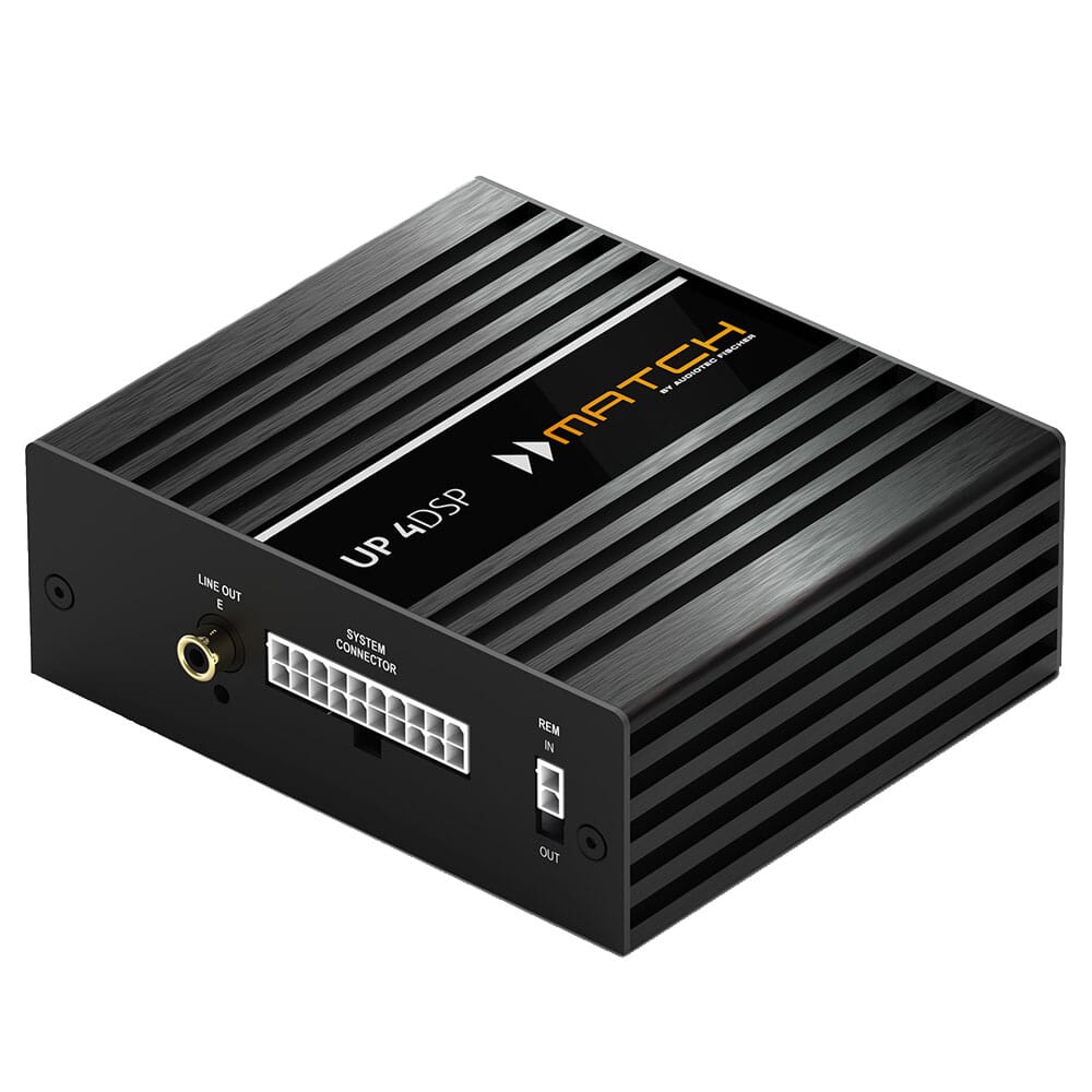 Dette er den perfekte løsningen for deg som ønsker å øke lydnivå, lydkvalitet og bassfundament betraktelig, på enklest mulig måte, uten synlige spor. Med svært kompakt fysisk størrelse kan Match UP 4DSP enkelt skjules inne i dashbordet i et ledig hulrom.