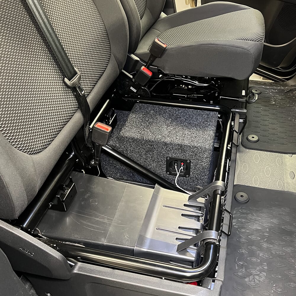 - Basskasse: Monteres inn under sittebenk på passasjersiden.