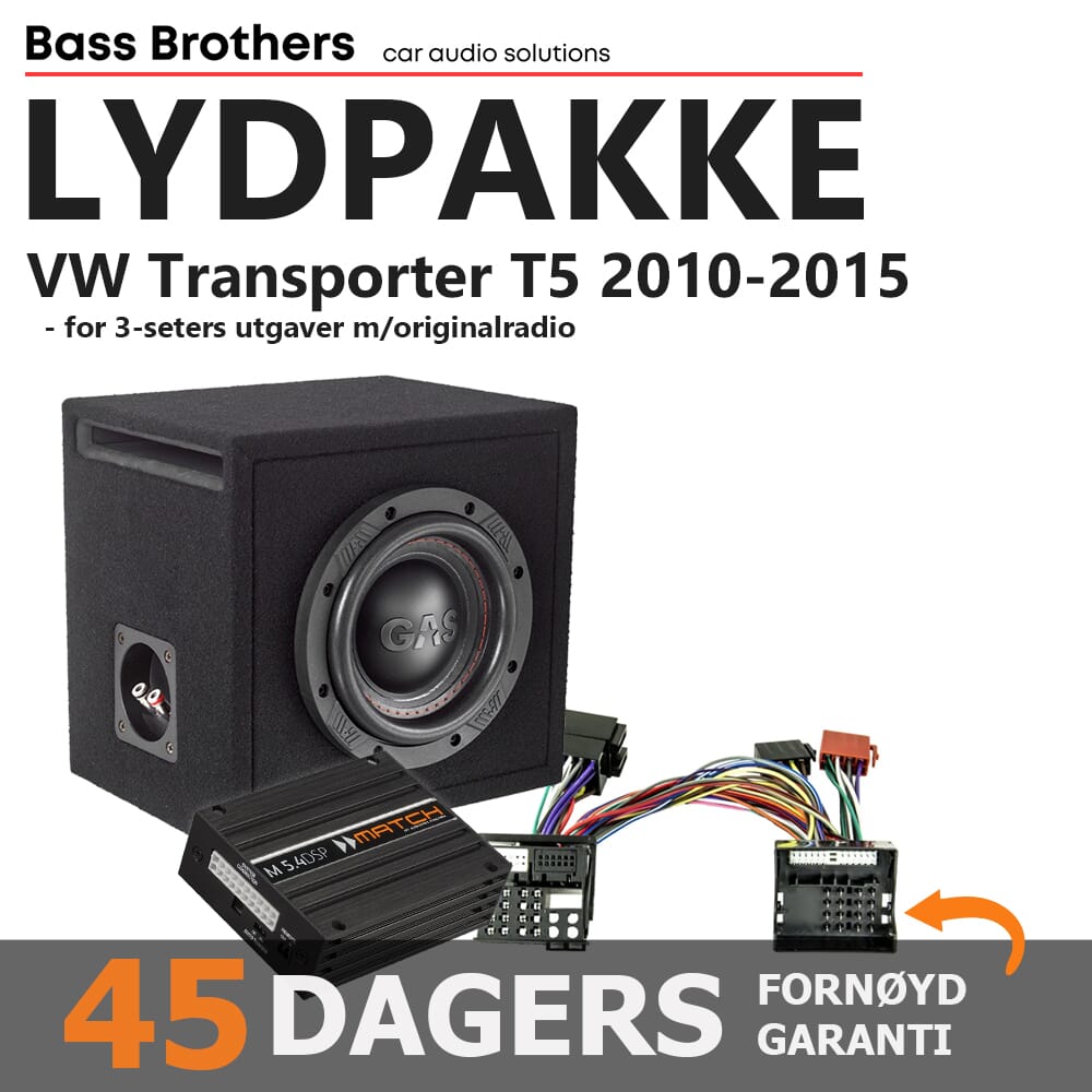 Plug and Play lydoppgraderingspakke for VW Transporter T5 (3-seters utgave)