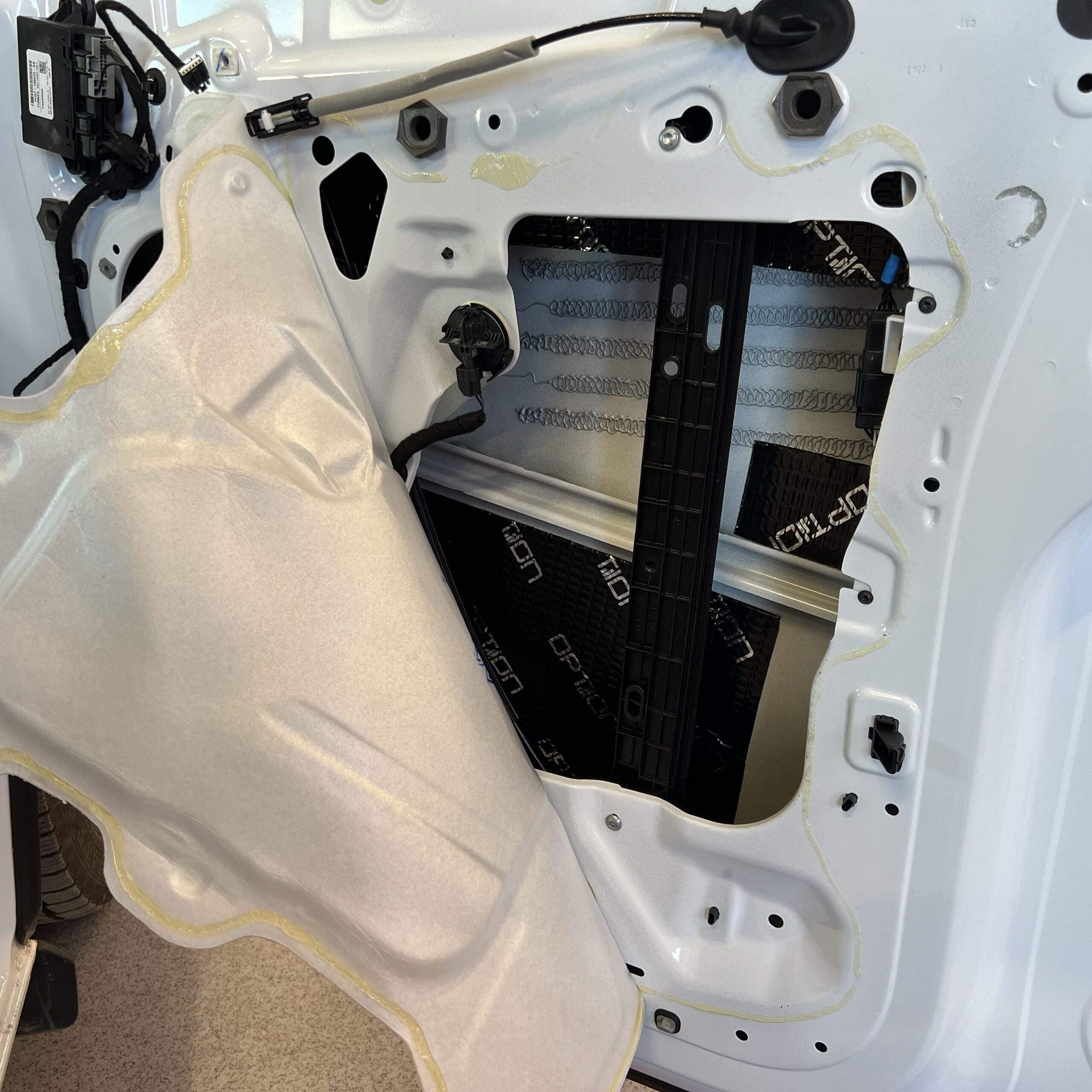 Det medfølger også to dempeplater av butyl, en plate til hver dør. Det er bemerkelsesverdig hvor mye effekt selv bare 1 slik butylmatte utgjør. Men for den som vil legge mer arbeid og penger i det kan du dempet både bildør og kupeen ytterligere.