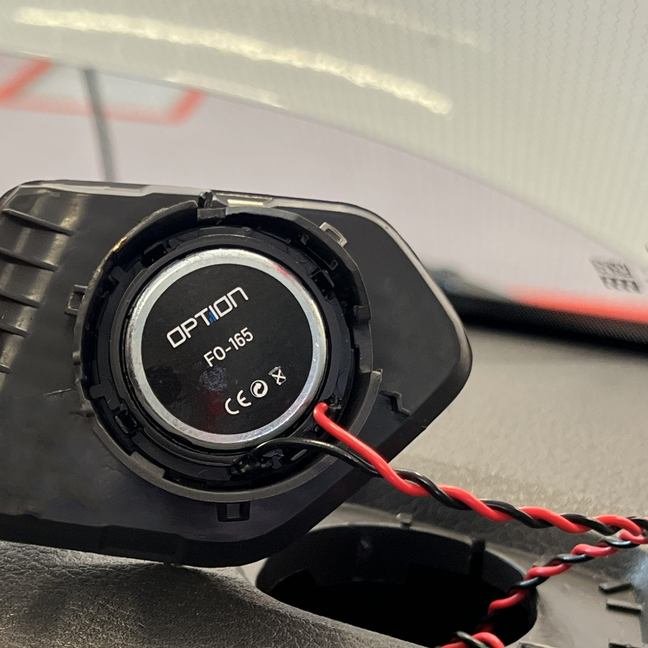 Ved hjelp av våre justeringer får vi utnyttet det reelle potensialet i de nye ettermonterte høyttalerne. Her skaper vi et løft i lyden, også bokstavelig talt. Tale og vokal kommer opp i mer korrekt høyde og låter mer balansert. I denne Nivå 2-pakken har vi valgt å inkludere Option FO-165 høyttalersettet, spesielt tilpasset VW. Et lettdrevent og effektivt høyttalersett med uforskammet bra lydkvalitet. Frisk og sprudlende diskant i kombinasjon med fast og fin mellomtone og fyldig midbassrespons.