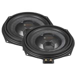 Spesielt BMW-eiere som har tidligere har kjørt F-serie og nå oppgradert til de nye G-modellene kjenner problemet godt, at bassen er blitt merkbart slappere enn hva man har vært vant til. I denne Nivå 2 pakken har vi valgt å inkludere nye basshøyttalere også. BMW med de nevnte utstyrskodene har normalt alltid originale basshøyttalere med meget høy motstand, gjerne 8 ohm. Dette er veldig lite effektivt i drift på ettermarkedsforsterker. Oppgradering av originale basshøyttalere vil dermed ha veldig stor effekt i dette tilfellet. Nye basshøyttalere med lavere motstand og bredere frekvensrespons vil gjøre bassresultatet fult på høyde med øvrig lydoppgradering.