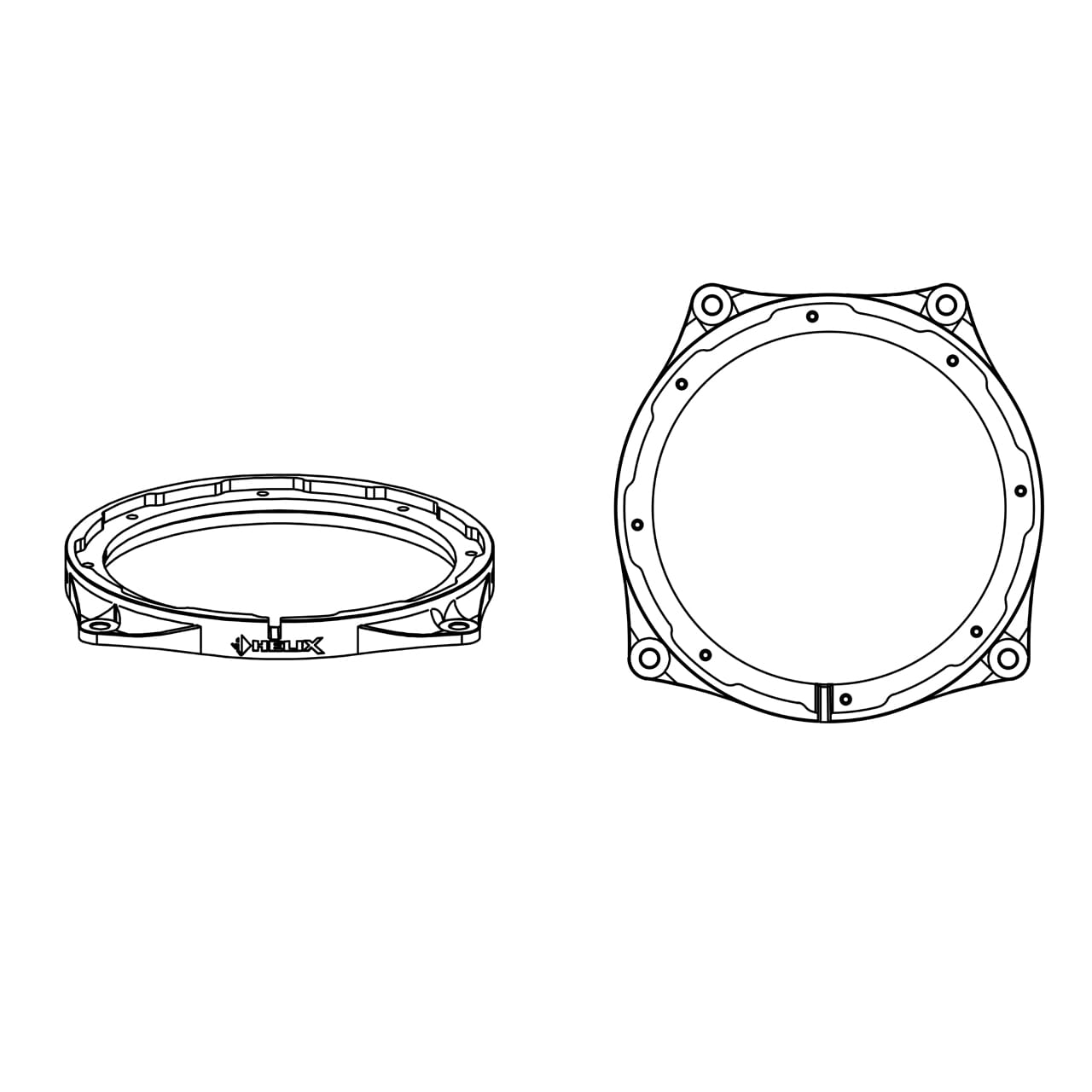 - Bilspesifikke adapterringer for profesjonell og akustisk optimalisert integrasjon av 6,5" Helix Compose mellomtone med FlexMount165.