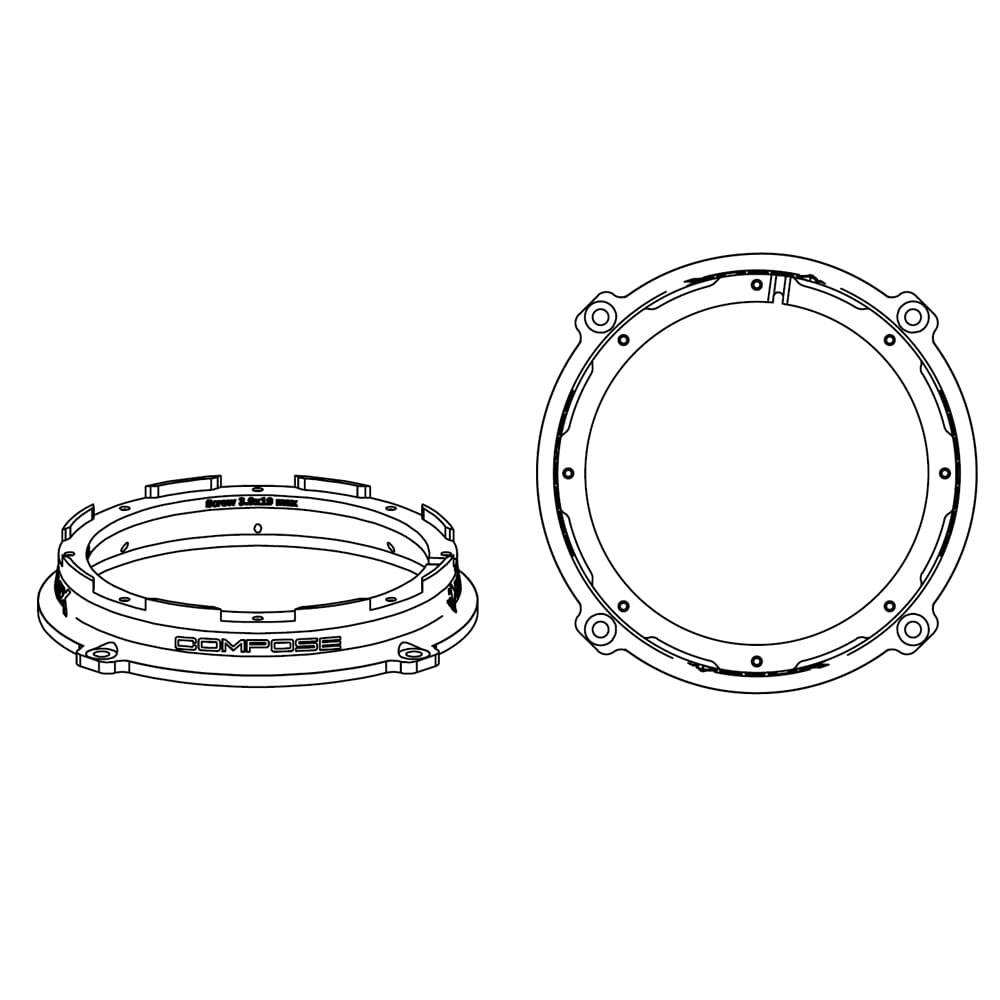 - Bilspesifikke adapterringer for profesjonell og akustisk optimalisert integrasjon av 6,5" Helix Compose mellomtone med FlexMount165.